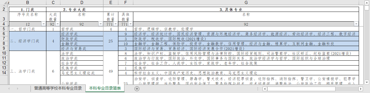 普通高等学校本科专业目录以及一级学科顶尖院校清单