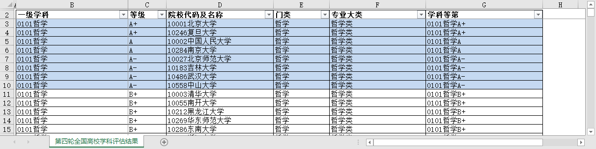 第四轮全国高校学科评估结果Excel表格.xlsx
