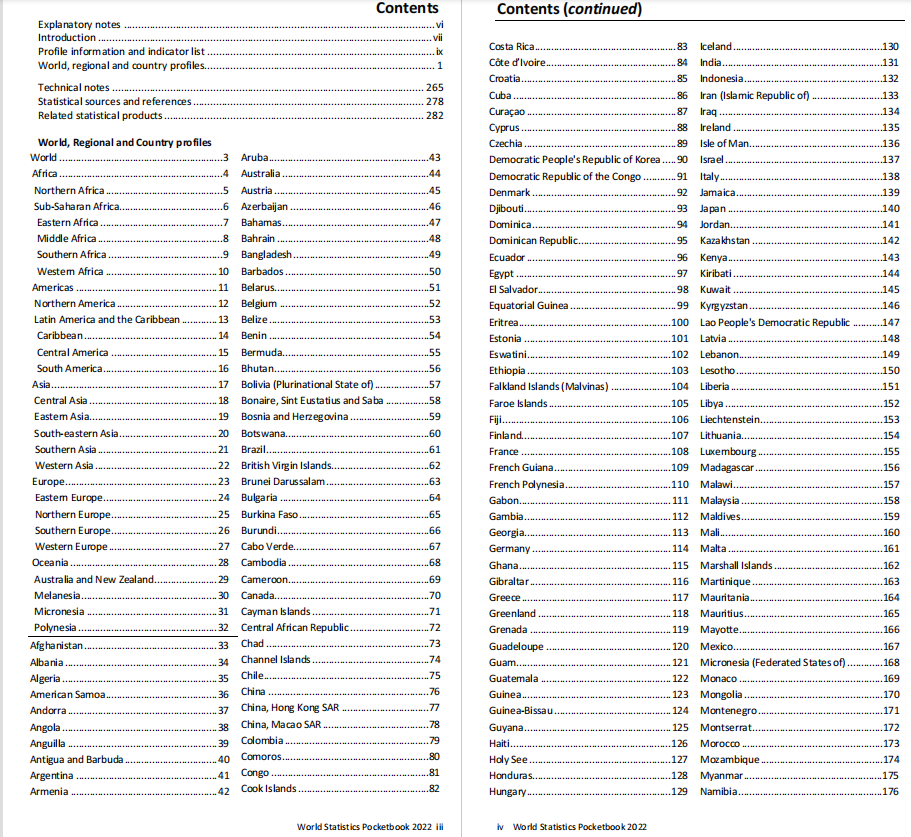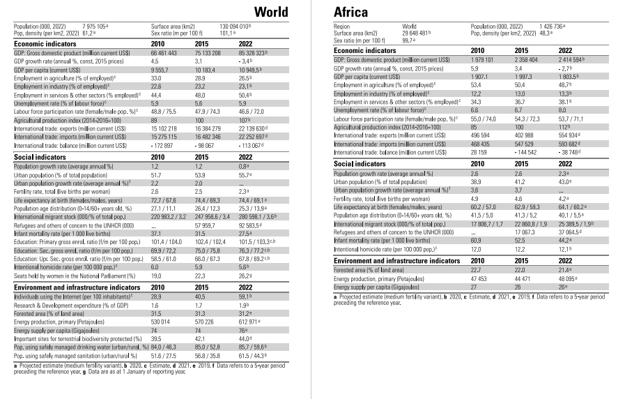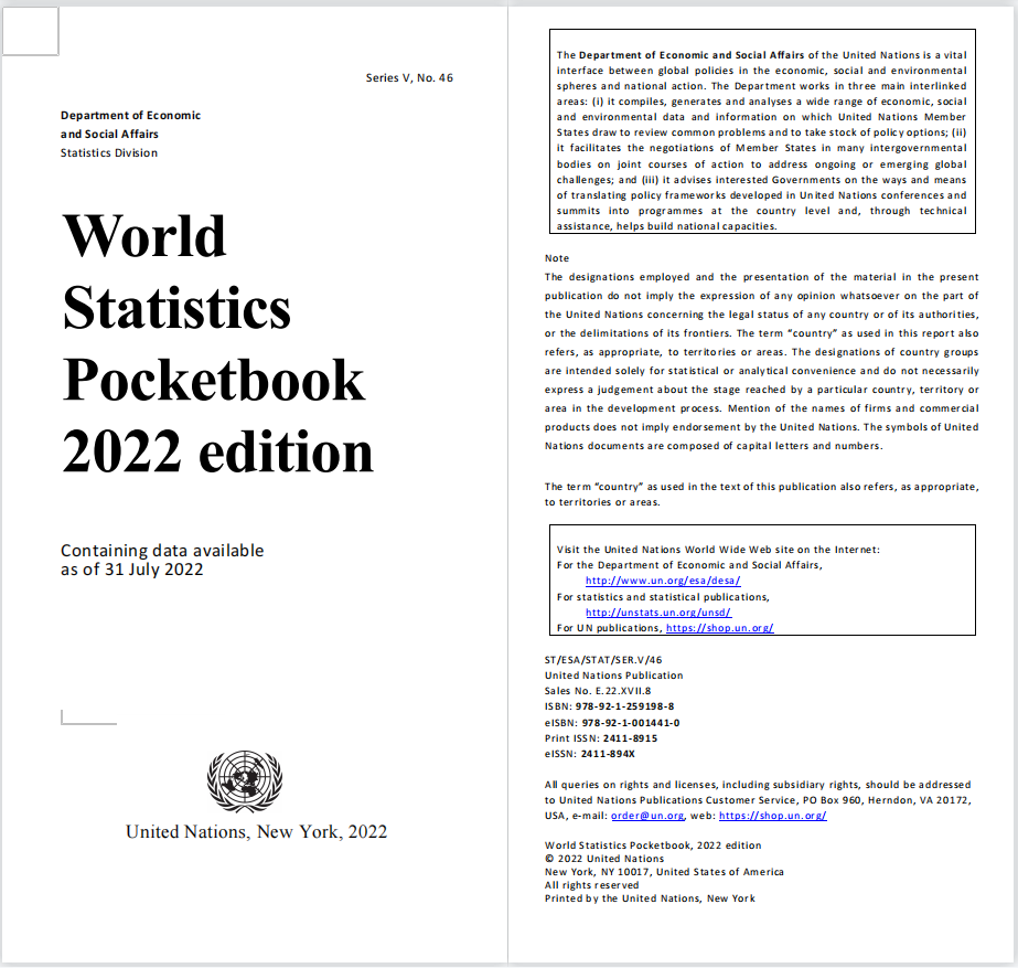 联合国统计局的《世界统计年鉴》2022年版World Statistics Pocketbook 2022 edition