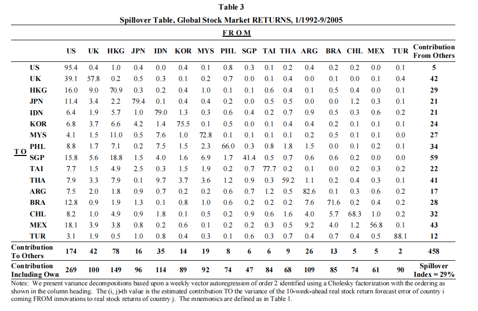 兜里没有糖糖 发表于 2023-3-13 13:16 求各位大神帮做Diebold and Kamil Yilmaz的溢出效应表,数据已发楼下,做两个表格.