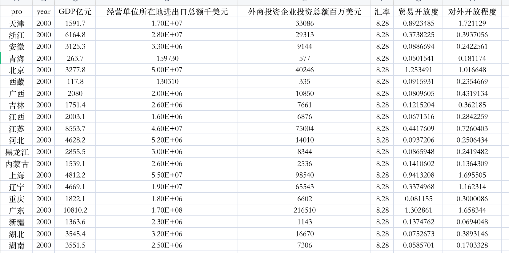 2000-2021年分省贸易开放程度与外商直接投资占比.xlsx