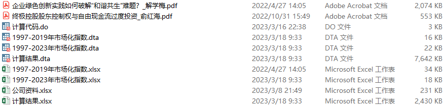 计算结果:将 “1997-2023年市场化指数”或“1997-2023年市场化总指数和各分项指数” 和“公司资料”(上市公司注册地所在省份)进行匹配之后的数据,方便大家直接使用