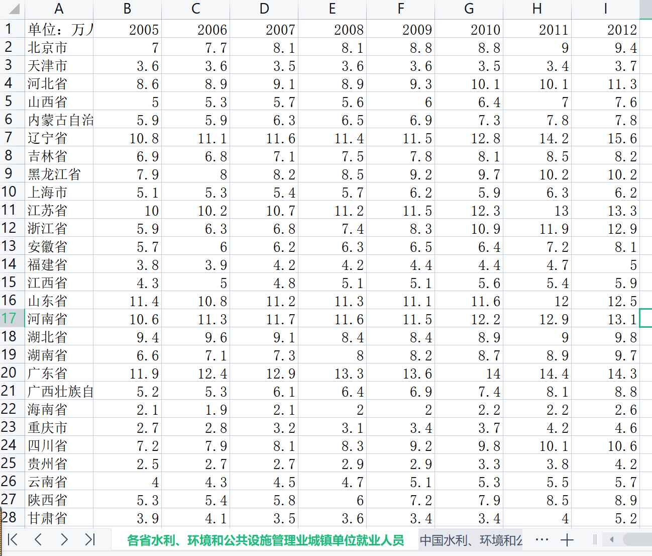 细分指标:各省水利、环境和公共设施管理业城镇就业人员&中国水利、环境和公共设施管理业城镇就业人员