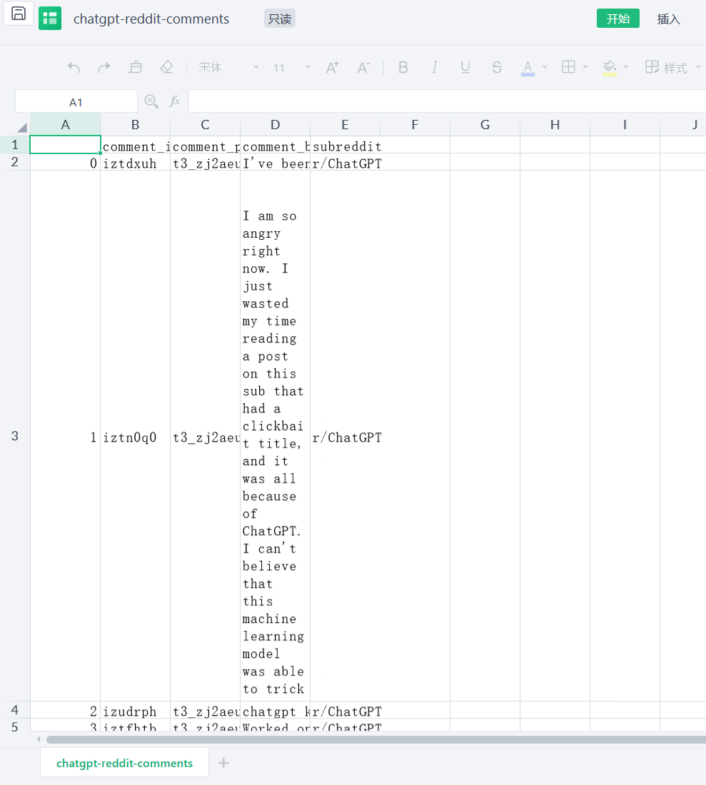 5万条基于rebbit的chatgpt的评论数据