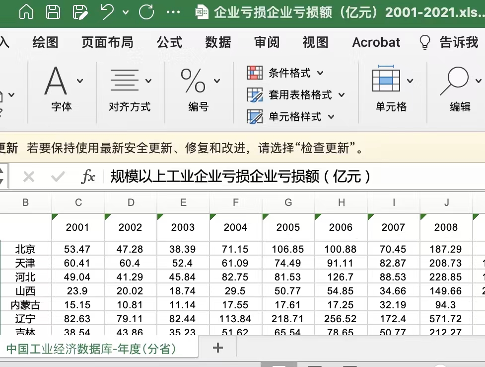 数据查找不易,好不容易找到一个时间窗格较长,且连续的省级面板企业亏损额数据。