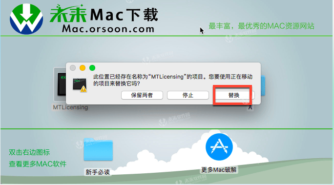 [backcolor=rgba(255, 255, 255, 0.25)]2、安装成功后,[backcolor=rgba(255, 255, 255, 0.25)]返回镜像包打开【minitab express 破解补丁.dmg】,[backcolor=rgba(255, 255, 255, 0.25)]将左侧的【MTLicensing】拉到右侧【A】文件夹中,替换即可破解。