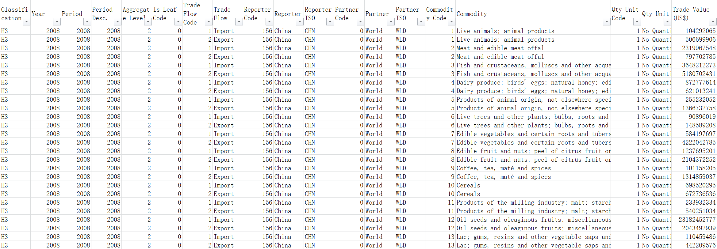 中国对一带一路国家各类农产品进出口额数据集 | 2008-2020 | 56565 | 一带一路国家人均GDP | 2011-2020 | 645 |