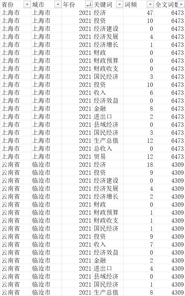 省级建筑业总产值 | 1999-2020 | 707 | 省级地方ZF经济发展关键词词频-基于文本挖掘 | 2000-2021 | 11705 |
