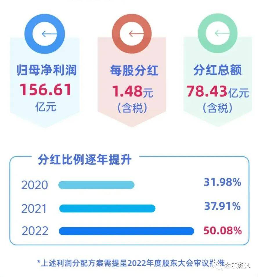 利润分配预案显示,海螺水泥2022年度拟向全体股东每股派发人民币现金股利1.48元,分红总额共78.43亿元,占净利润的50.08%,分红比例创历史新高。