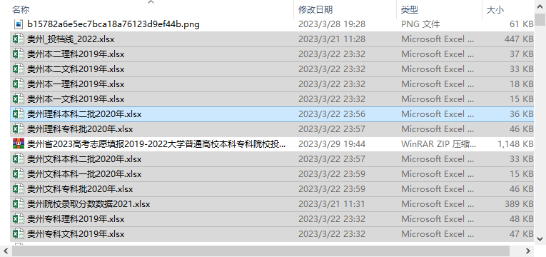 贵州省2023高考志愿填报2019-2022大学普通高校本科专科院校投档录取分数名次理工文史类.zip