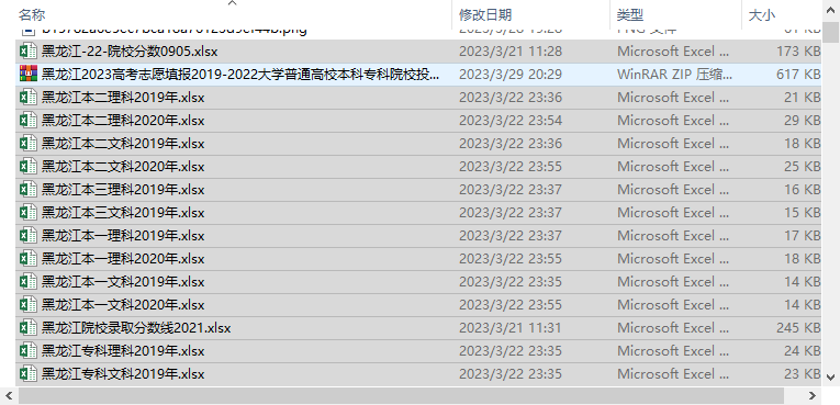 黑龙江2023高考志愿填报2019-2022大学普通高校本科专科院校投档录取分数名次理工文史类.zip