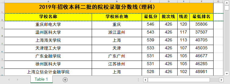 学校名称 学校所在地 zui低分 批次线 线差 zui低排名
