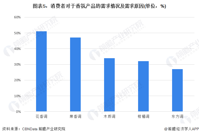 新生代正在引领“气味经济"。年轻化也使得借“香”说话的重要性持续提升。51%的消费者更偏爱于花香调产品,并且认为可以调节心情,提升魅力与愉悦自我;47%的消费者更偏爱于果香调产品,认为可以放松心情。总体而言,消费者更爱清爽淡香来疗愈、取悦自己,其次才是以香加持,提升气场或魅力。