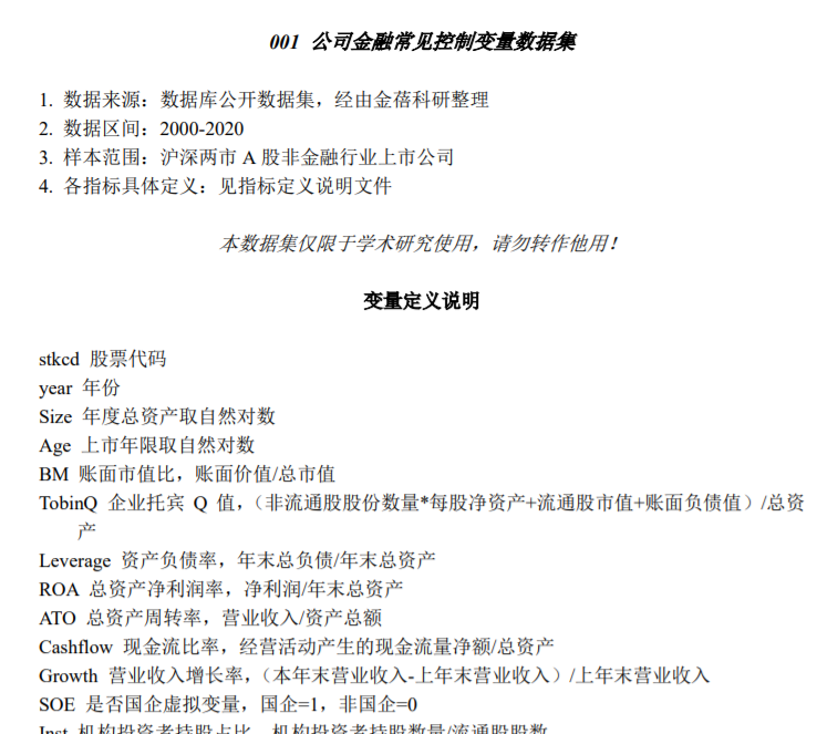 公司金融研究常见的控制变量整理(2000-2020)(1)