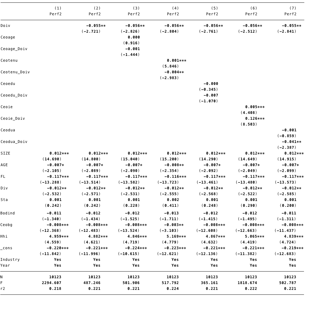 ⑤CEO两职兼任(Ceodua)。若CEO同时担任董事长,则取值为1,否则取值为0。
