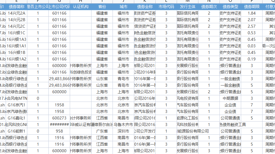 债券代码、交易所代码、债券简称、是否上市公司、上市公司代码、认证机构、省份、城市、债券全称、市场代码、发行主体、债券期次、债券类型、债券期限、付息方式、发行方式、利率类型、币种、批准规模、发行规模、债券面值、发行价格、票面利率、参考收益率、认购倍数、计息方式、起息日、发行日期等等