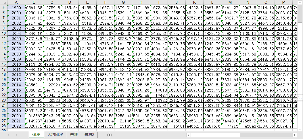 全国和各省gdp 1999到2022