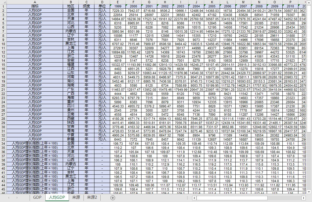 全国31个省份各省级地区生产总值GDP1999-2022人均GDP人均GDP增长指数1999-2021.xls