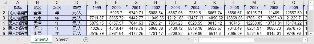 全国31个省份各省级1999-2022全体城镇农村居民人均消费性支出数据.xls