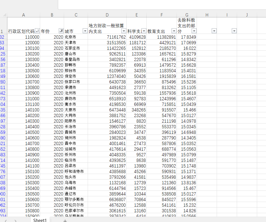1990-2020年地级市政府一般预算支出、公共支出、科学教育支出论文中把公共支出部分=一般预算支出-科学支出-教育支出,可用于控制变量