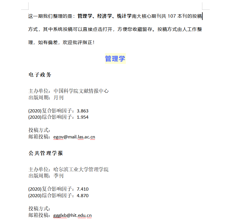 CSSCI南大核心来源期刊投稿方式大全(部分)