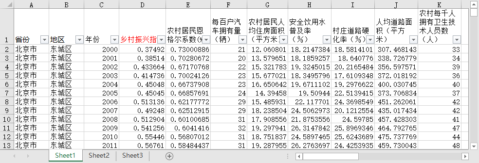 全国各地市州级城市乡村振兴生活富裕指标2000-2022农村居民恩格尔系数汽车拥有量人均住房面积道路硬化率安全饮用水普及率