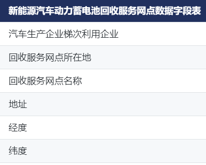 CnOpenData新能源汽车动力蓄电池回收服务网点数据-字段表.xlsx