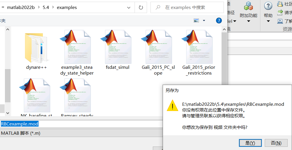 经济学小白,用matlab创建的mod文件想保存到dynare的example文件夹下,但是提升需要管理员权限,求大佬们求解。