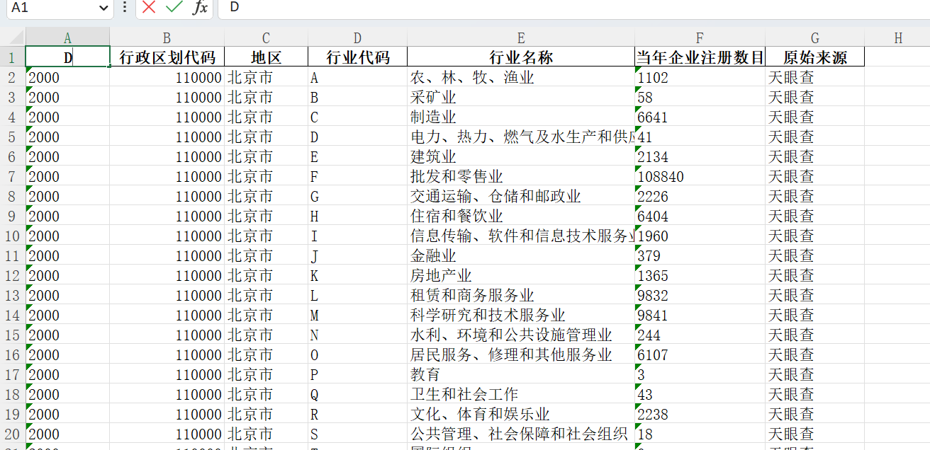 珍贵数据-稀有数据-各城市分行业-新注册企业数据-天眼数据最新