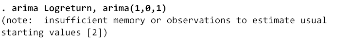 我的变量是logreturn,df测试已经确认是平稳序列了,也tsset date过了