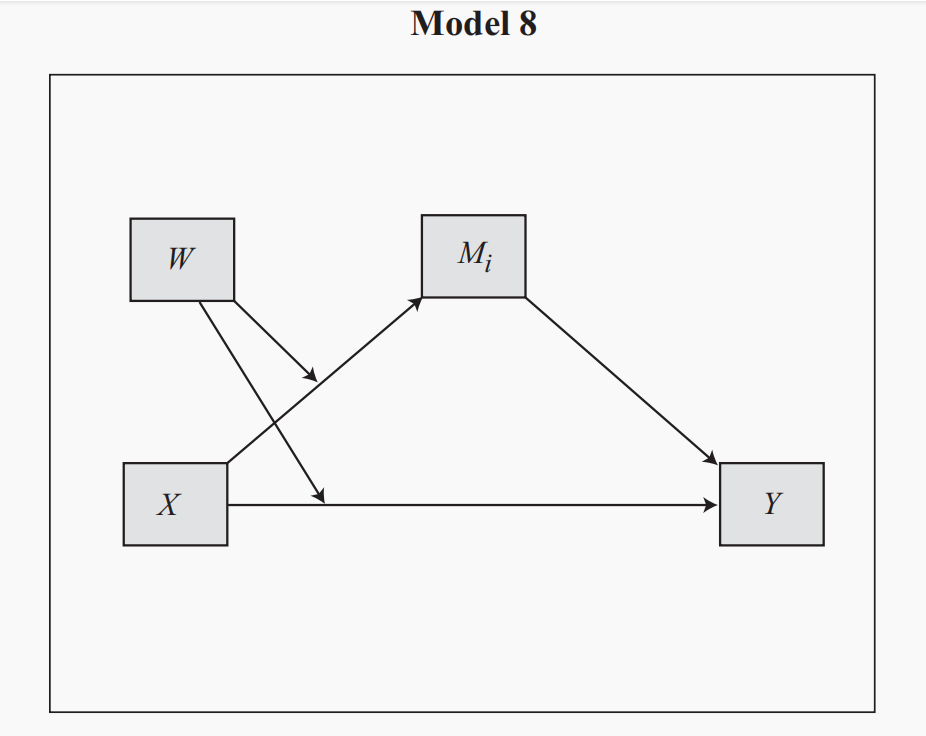 自变量为三水平的分类变量,中介和调节是连续变量,因变量是二分变量,具体的路径图就是process里的model8
