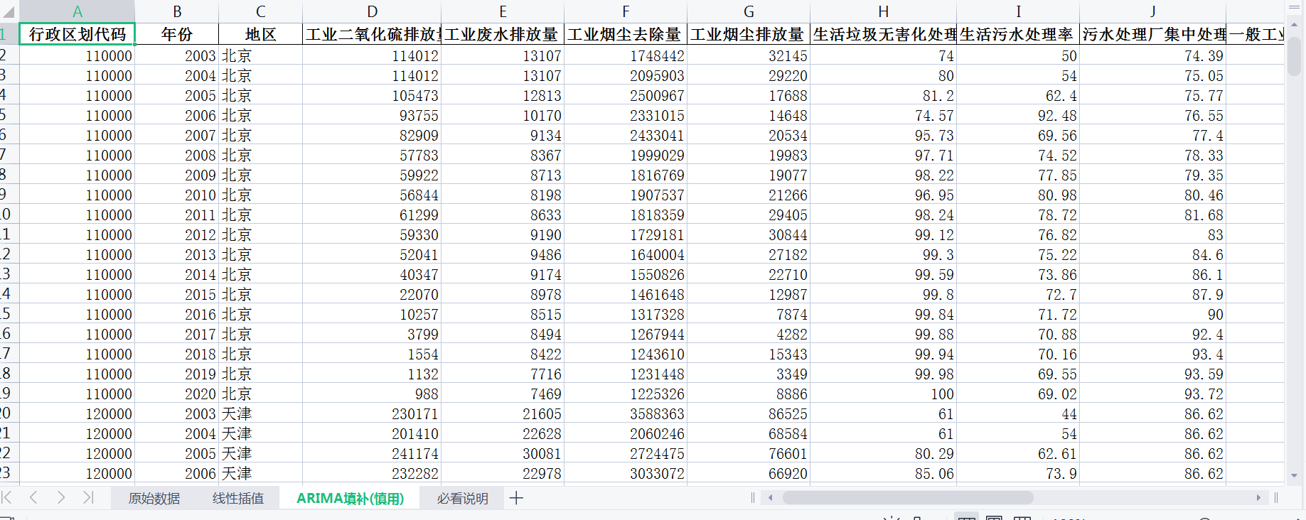 数据整理:内含原始数据、线性插值、ARIMA填补版本