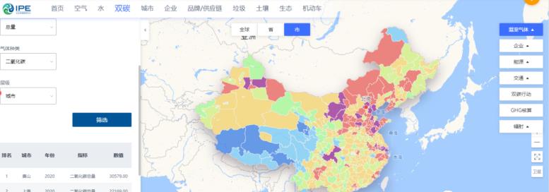 数据爬取自IPE双碳地图页面,可视化图见下: