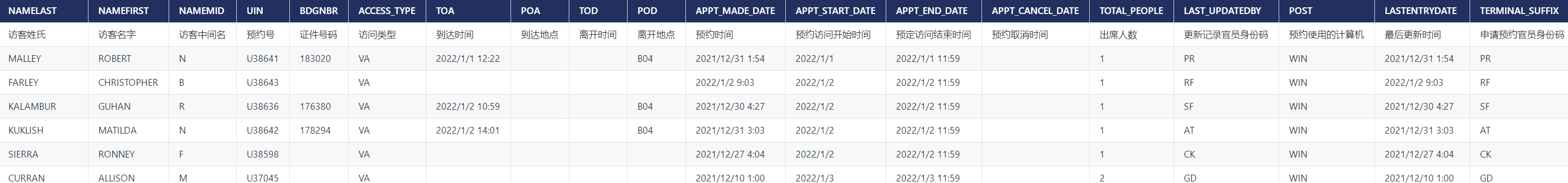 白宫访客日志记录了各种活动的访客,包括会议、晚宴、演讲和社交活动等。这些活动可能涉及总统、副总统、白宫官员、内阁部长和其他ZF官员。白宫访客日志还记录了来自各种行业和组织的访客,包括商业领袖、学者、普通公民和组织代表等。它是透明度和公开性的象征,是美国ZF向公众展示ZF透明度的一个重要内容。