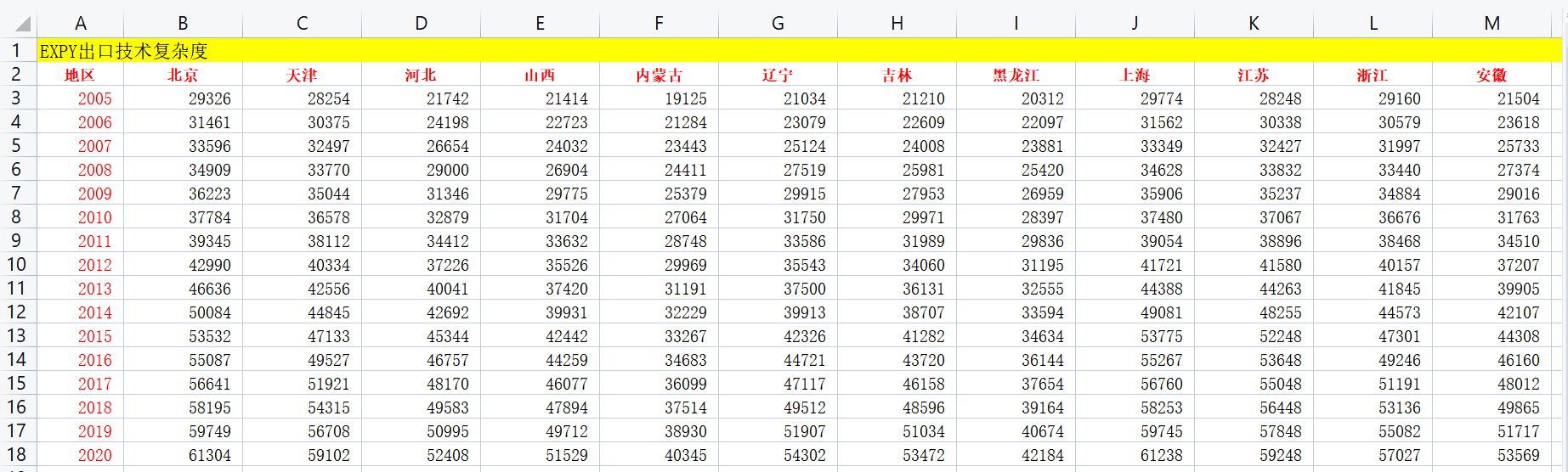 使用根据SITC Rev.2的三位码分类的2005-2020年度239种出口产品数据