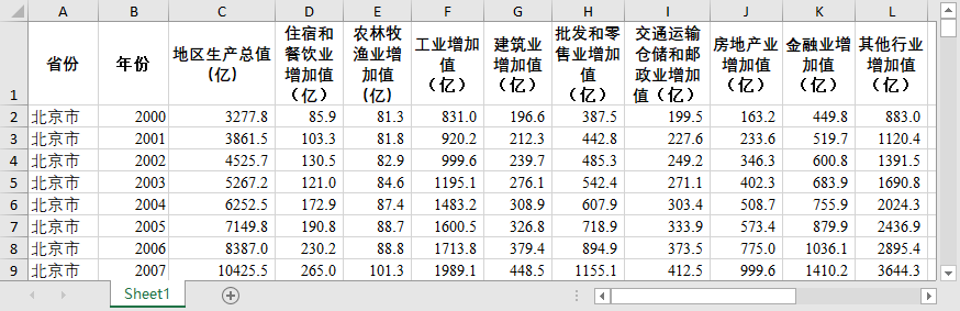 全国31个省份各省级2000-2022GDP住宿餐饮农林牧渔工业建筑批发零售交通运输仓储邮政房地产金融业增加值