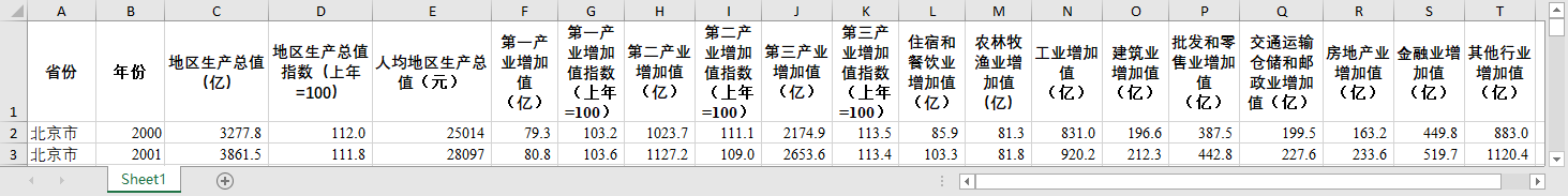 全国31个省份2000-2022GDP第一二三产业住宿餐饮农林牧渔工业建筑批零交通运输仓储邮政房地产金融业增加值地区生产总值国民经济核算数据