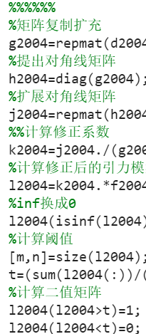 matlab 代码撰写的修正引力模型,输入数据一秒钟获得修正后的引力矩阵,并且可以设定阈值,将引力矩阵换算为二值矩阵,方便进行社会网络分析。matlab代码参照地理学报2022年第九期张明斗等(2022)文章进行编写。代码截图如下。