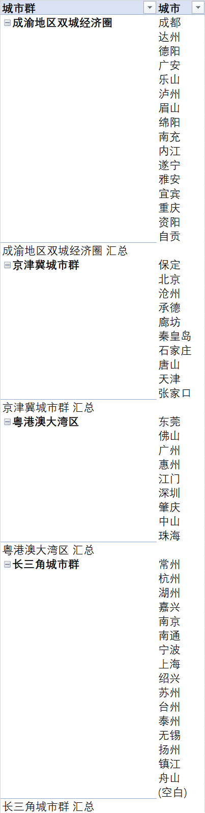 长三角、珠三角、京津冀、成渝城市群GDP总量及分行业GDP数据.xlsx