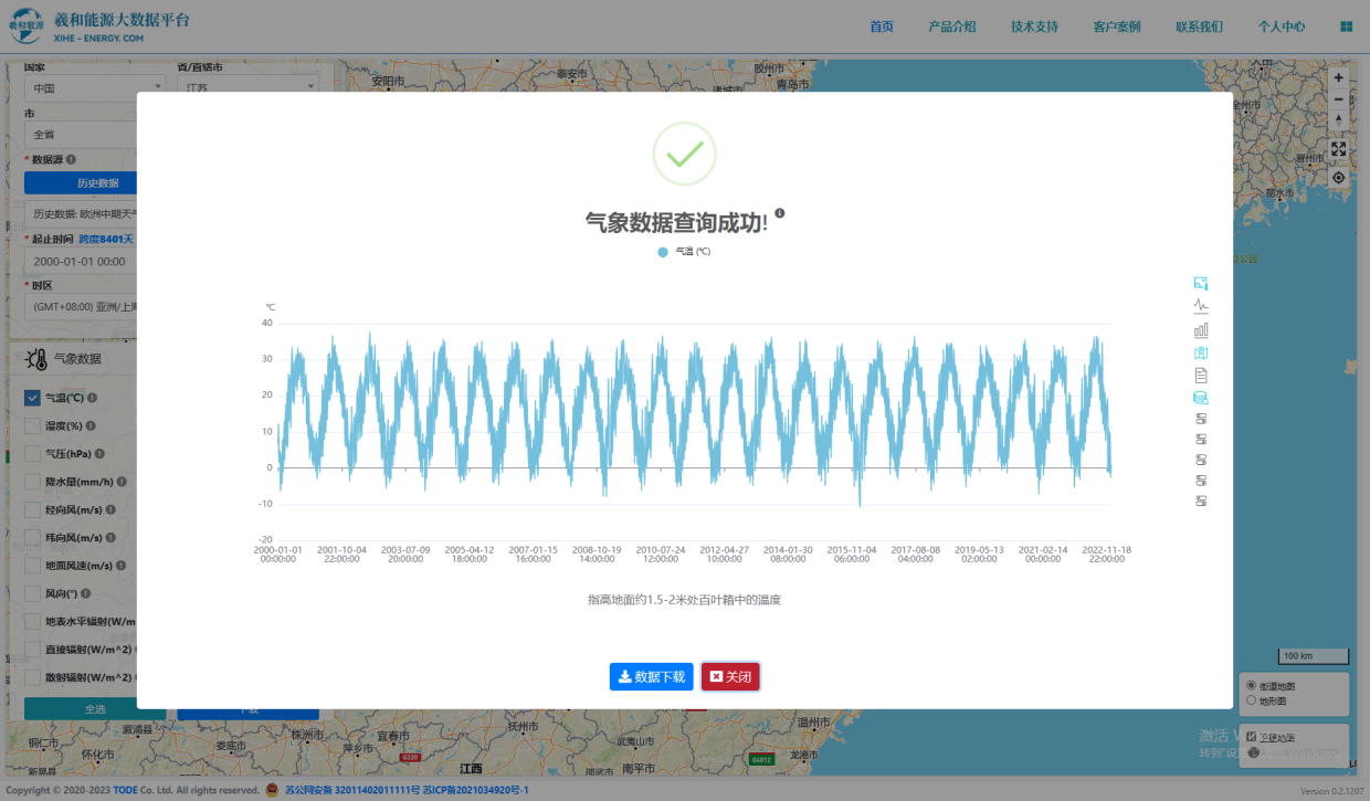 1、单点数据:输入地理位置或者精确经纬度坐标,查询数据的起止时间进行设置(时区自动确定);区域平均数据:选择省/直辖市、市、县/区。