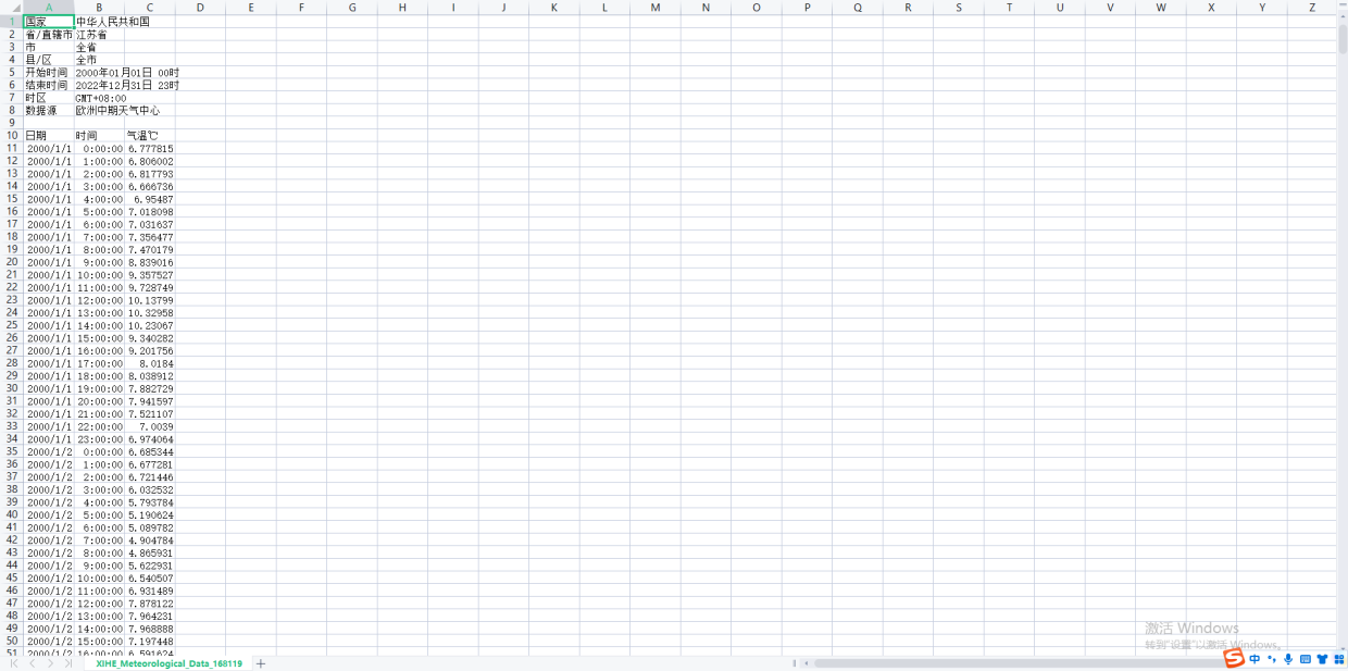 本文章分享的是全国各省区域平均数据,2000年1月1日-2022年12月31日欧洲中心数据25km分辨率小时级的气温数据,平台有欧洲气象中心数据、nasa数据的历史数据和德国气象局预测数据。
