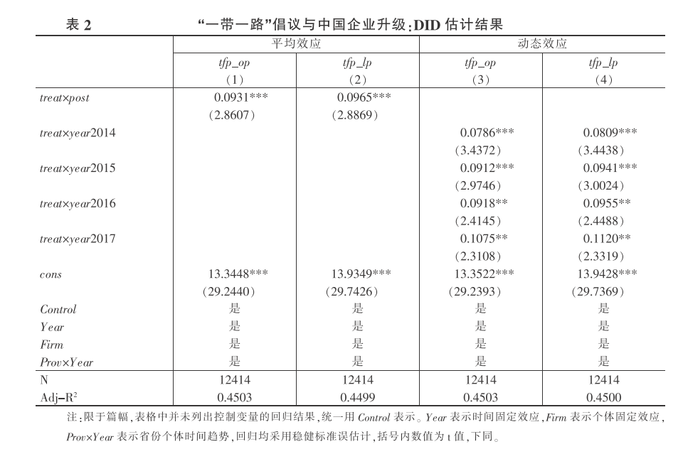 2.DID估计结果:“一带一路”倡议与中国企业升级