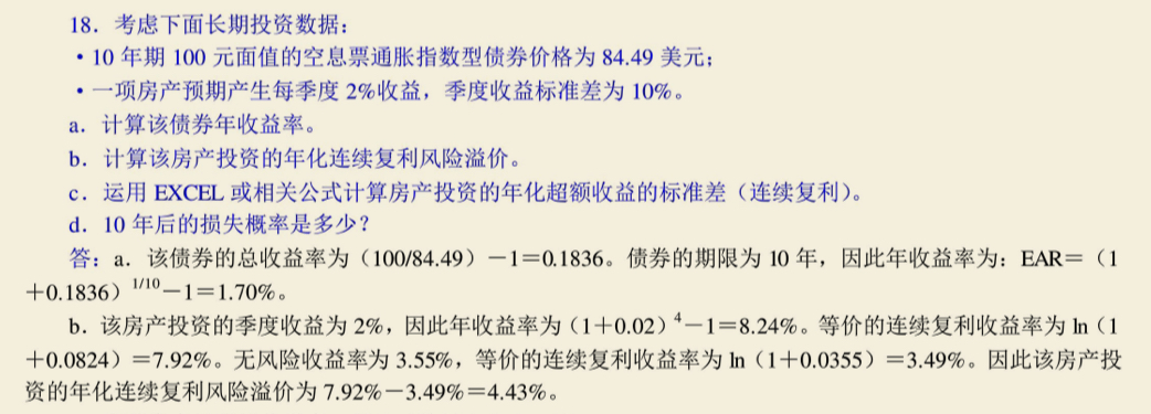 投资学博迪第十版的第五章课后习题第18题中,年化连续复利风险溢价要如何计算?