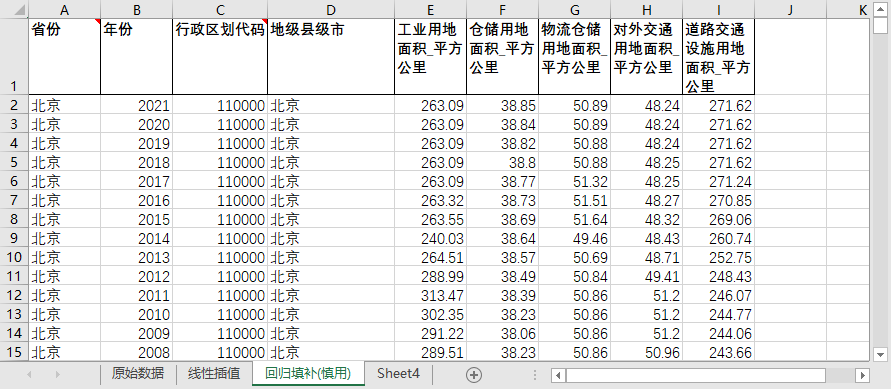 excel数据文件包原始数据(由于多年度指标不同存在缺失值)、线性插值、回归填补三个版本,提供您参考使用。