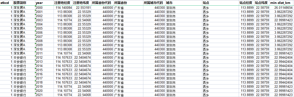上市公司注册地与空气质量站点间最小距离测算(附空气质量监测站点经纬度、上市公司注册地经纬度)