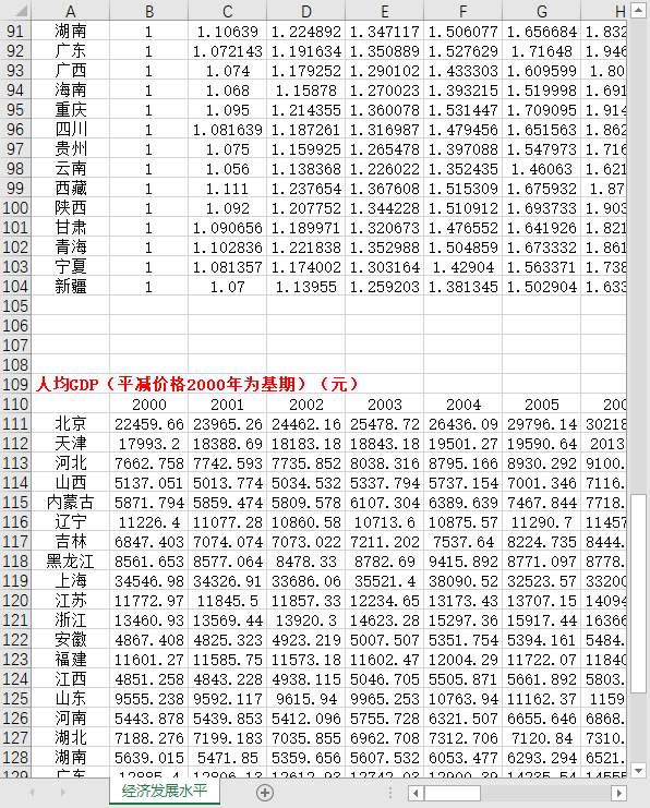 全国31个省份各省级经济发展水平数据2000-2021人均国内总产值指数人均GDP平减价格2000