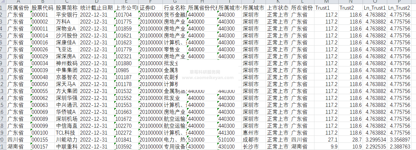 1.资料名称:2022-2005年上市公司企业地区信任水平、地区社会信任数据