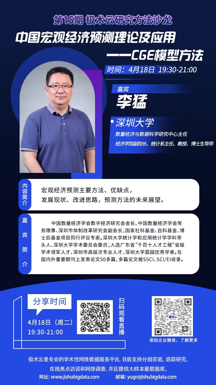 沙龙主题:中国宏观经济预测理论及应用—CGE模型方法