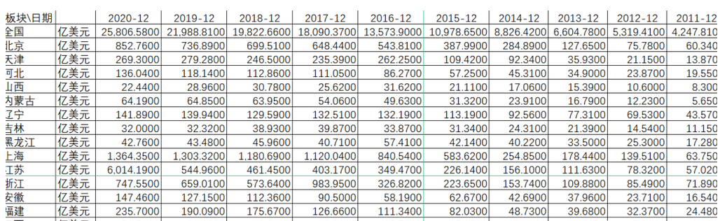 各省份非金融类对外直接投资存量2003-2020年