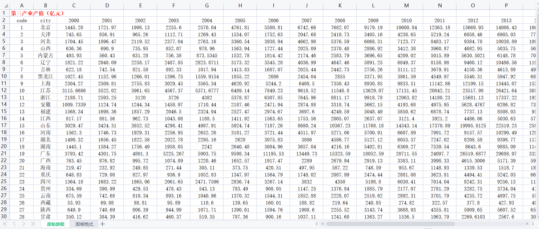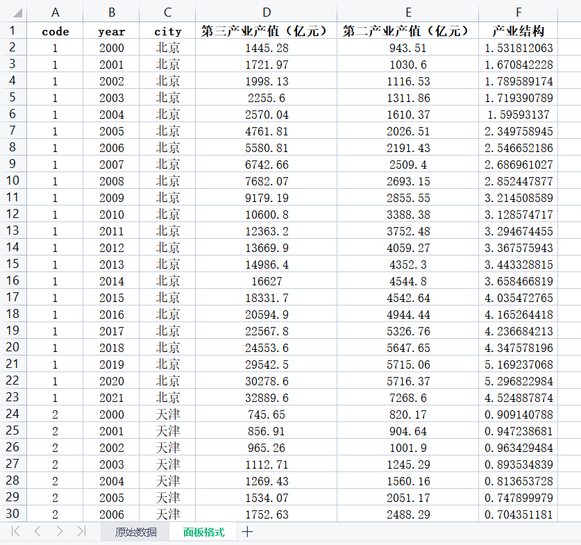 2000–2021年各省三次产业就业人数和总人数数据整理